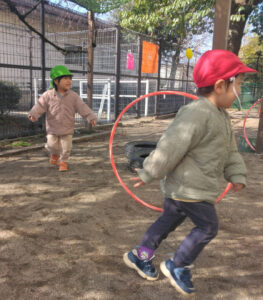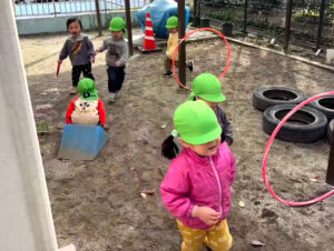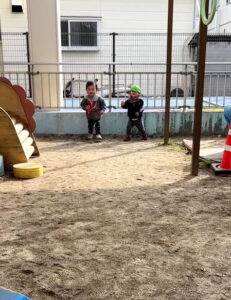 ということで、お天気が良い日は、こうして戸外で思いっきり体を動かして遊んでいる子ども達でした。
