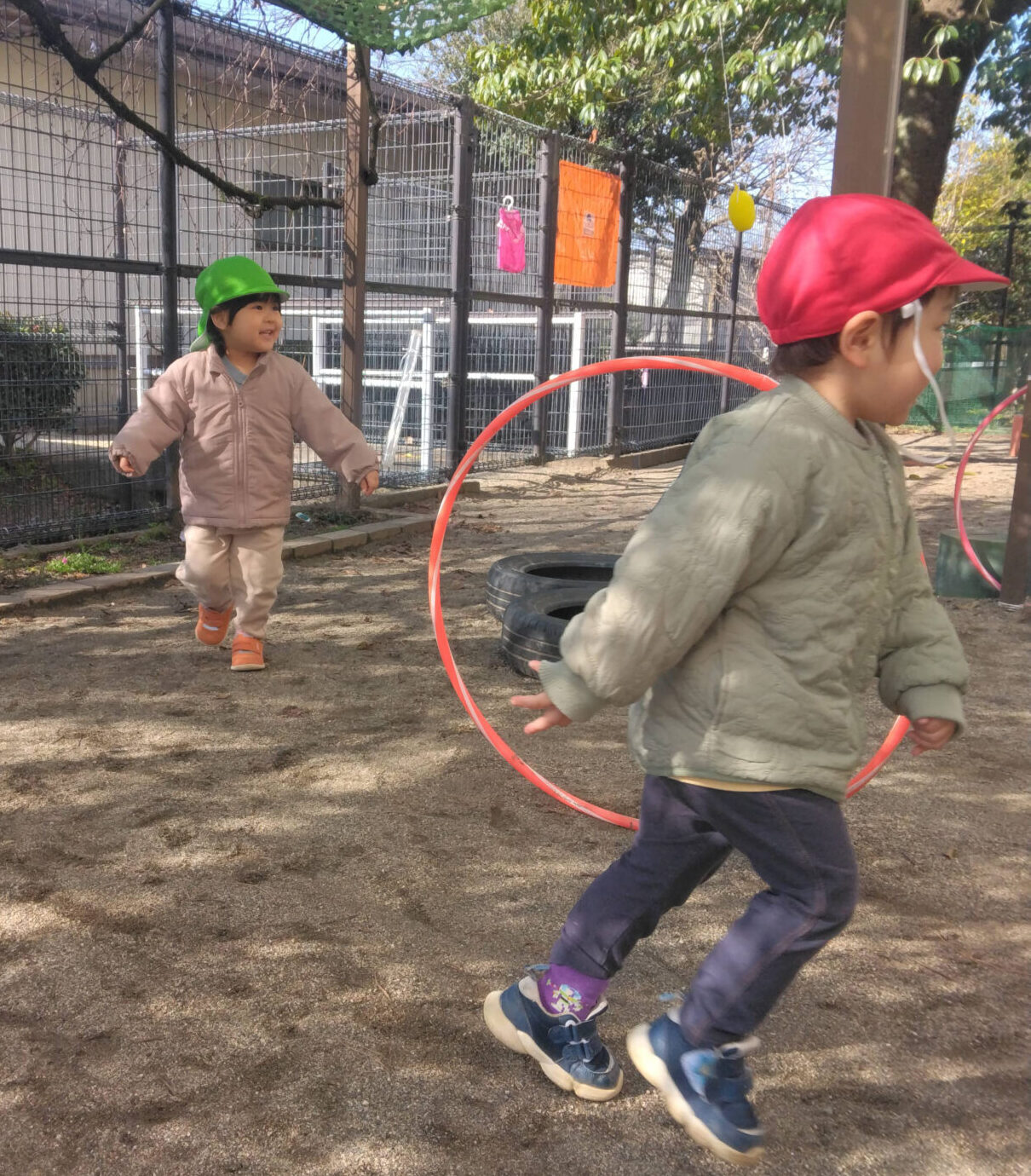 今日も第2園庭では子ども達同士で、元気よくかけっこをする姿が見られました。