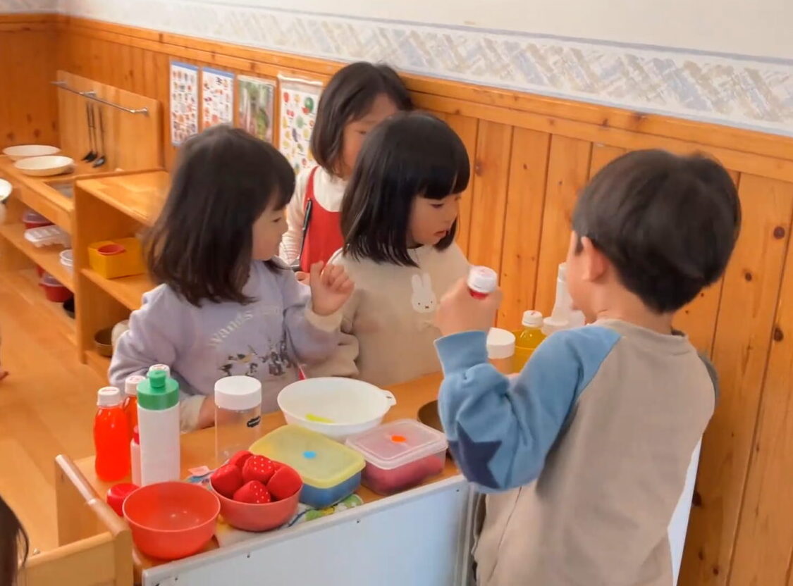 今回は、進級を控えて進化する遊びの様子や子ども達同士の関わりに視点を当ててお伝えします。