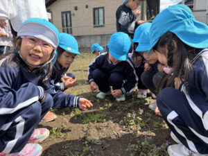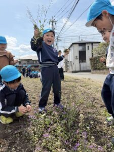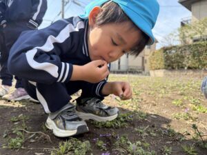 畑には子ども達が大好きなホトケノザが沢山咲いており、すっかり春らしくなりました☘️