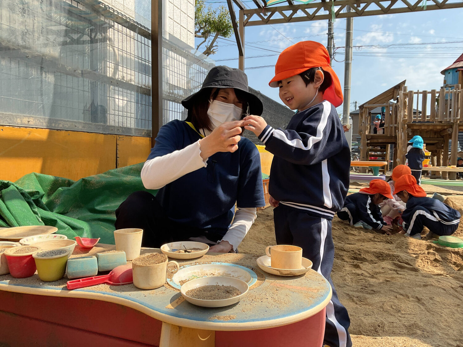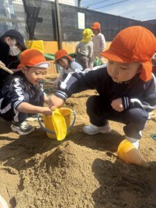 砂場では泥だんご作りがまだまだ継続中‼︎