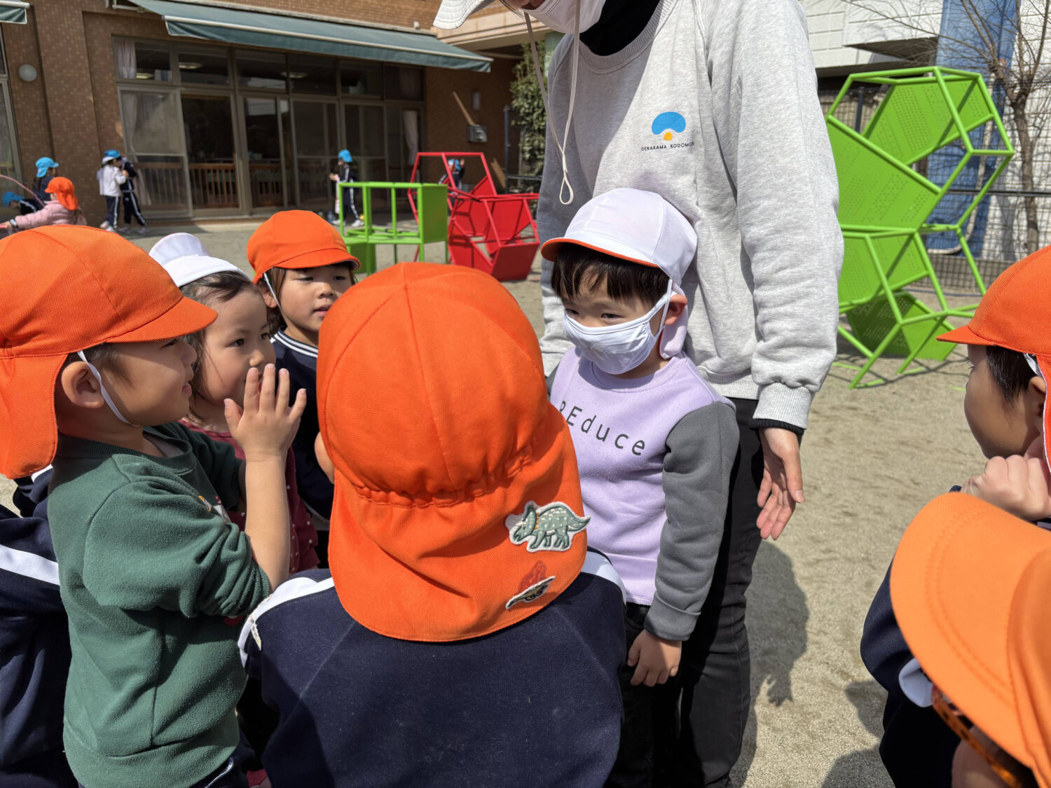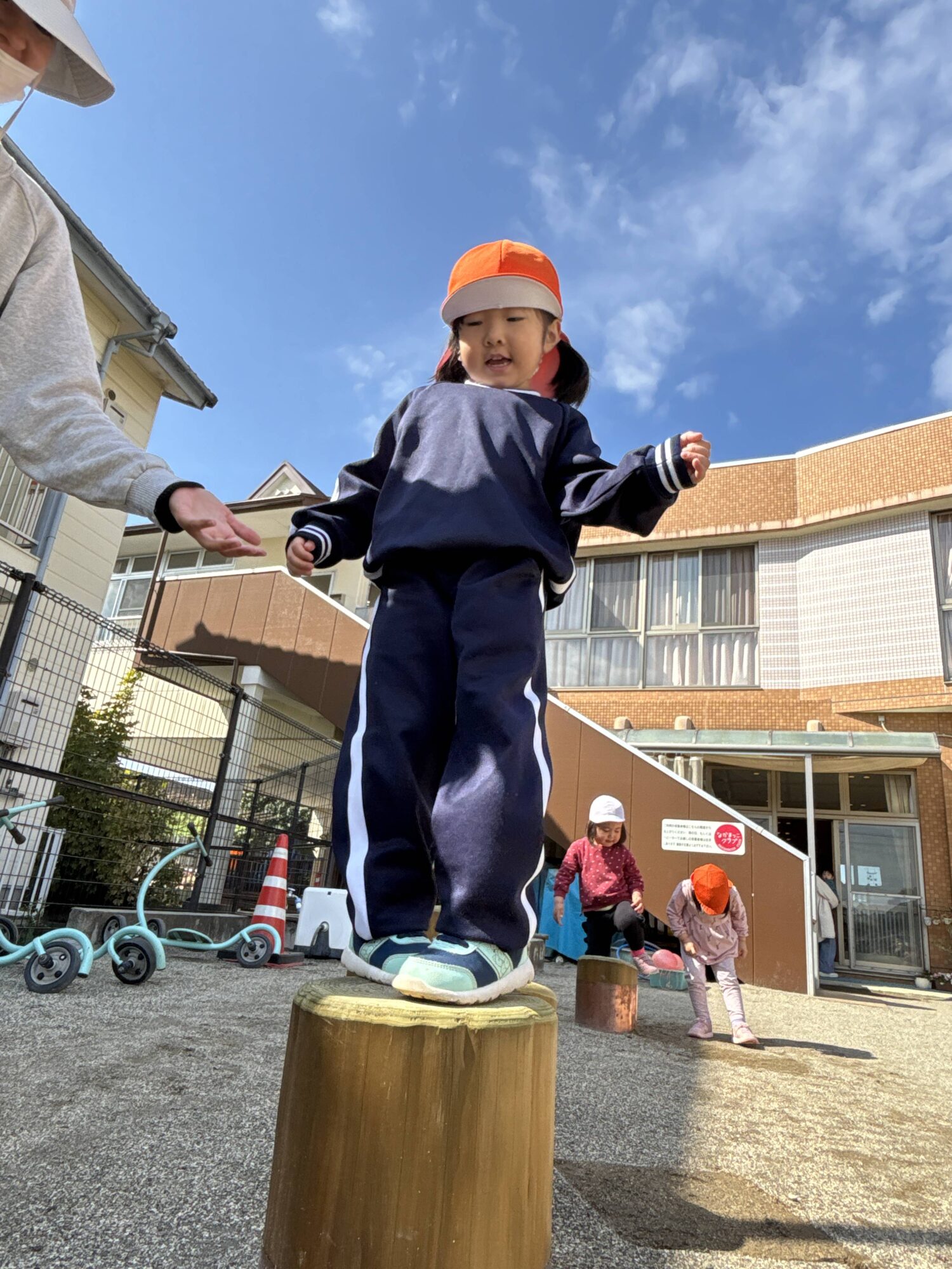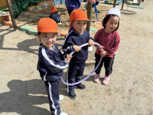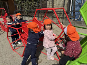 子どもたちは戸外に出て元気いっぱいに身体を動かしながら、お友だちと一緒に楽しく遊んでいます‼︎