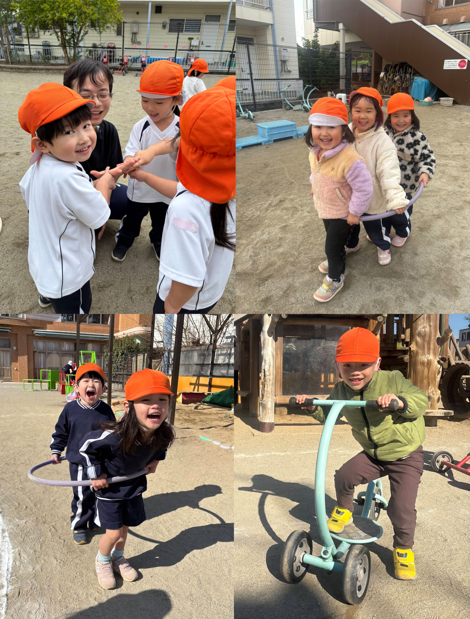鬼ごっこや、電車ごっこ🚋、三輪車などなど…晴れの日は毎日いっぱい体を動かして遊んだね!