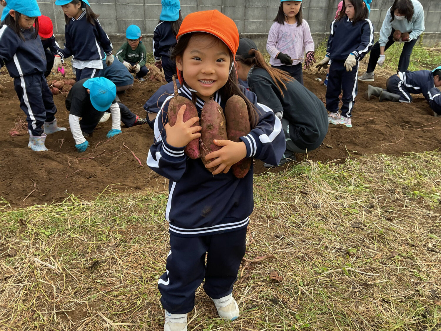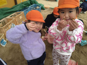 ばら組とゆり組さんの「お芋掘り」の様子を見にいきました。