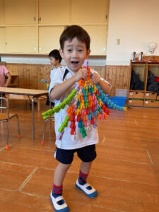 「目玉をつけて、トンボを作ったよ!」