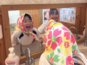 👧🏻「お風呂(プール)上がりにタオルで頭を巻き巻き♪」
