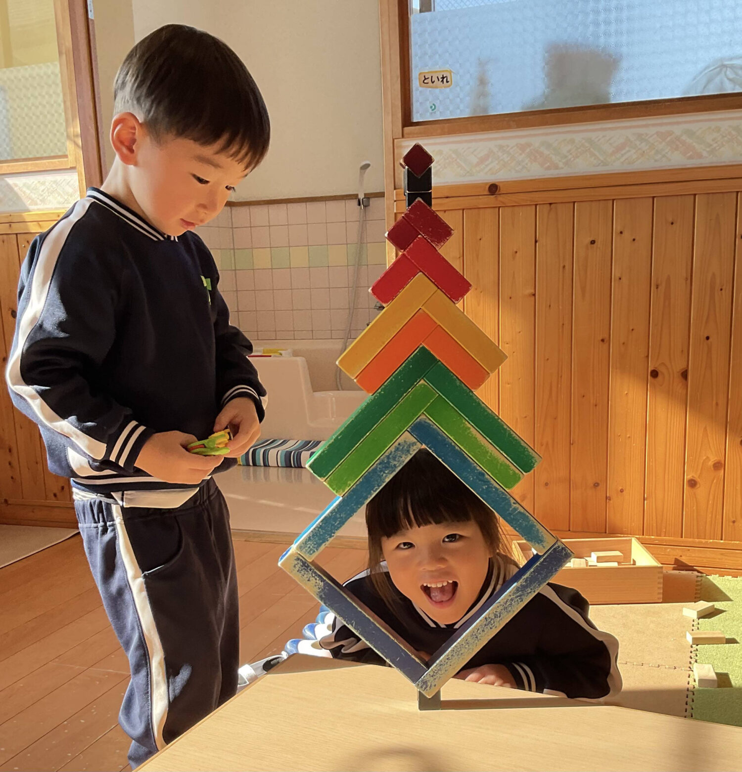 力を合わせてタワーづくり🗼