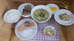 豚汁には、豚小間、厚揚げ、里芋、大根、人参、ごぼう、小ネギ、いりこ、味噌、かつお節を使用しています。だしがしっかりときいていて、具沢山なので旨味があり美味しかったです😁
