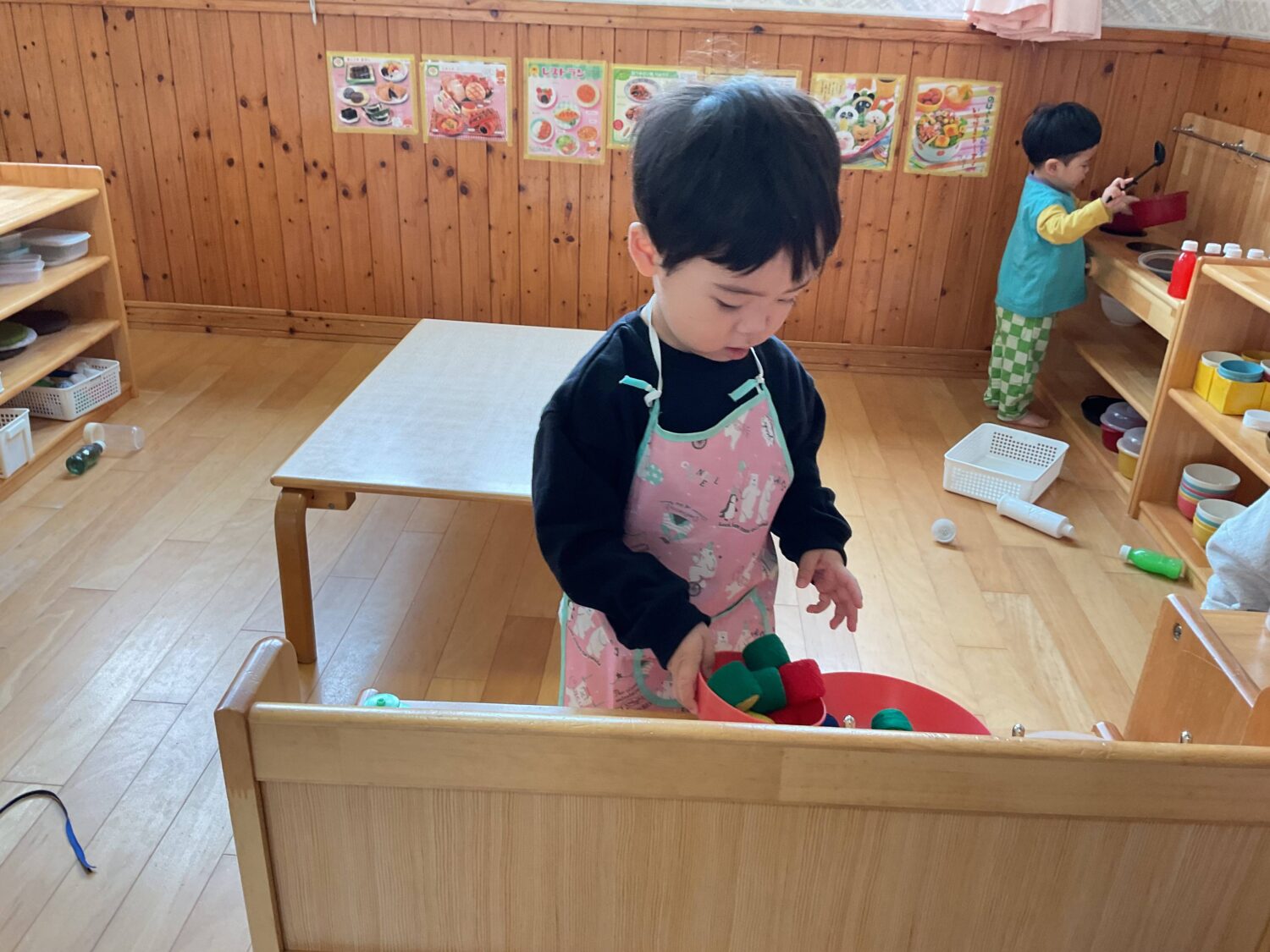 進級して、おままごと遊びもグレードアップ…より臨場感が増していますネ☝🏻👩🏻