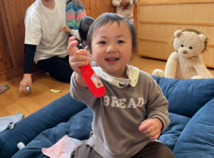 子ども達は、お部屋遊びや戸外遊び、新しい玩具にも興味津々。