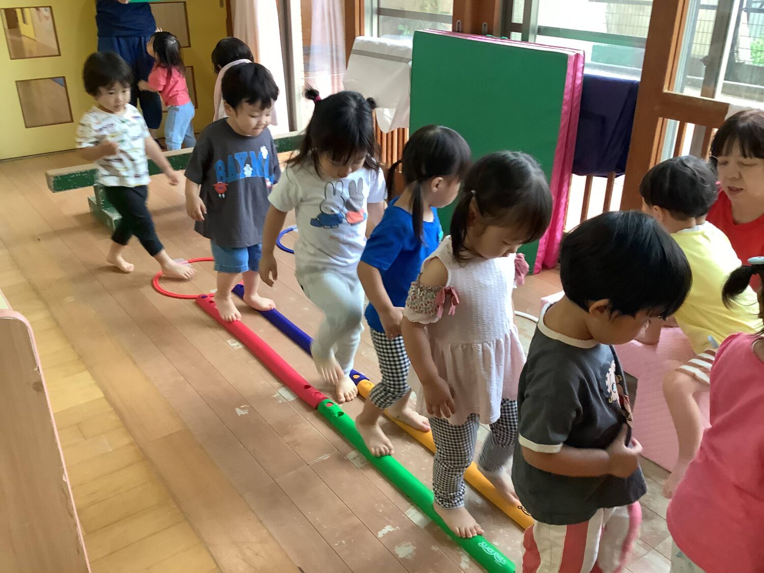 子どもたちは、生まれてから3歳までに遊びの中で様々な運動刺激を受けることによって、体の動きや力のコントロールなどを習得することが出来ると言われています。