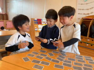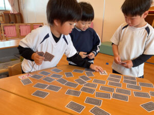 神経衰弱の他にも、ばば抜きや、ぶたのしっぽなども楽しんでいる子どもたちです☺️