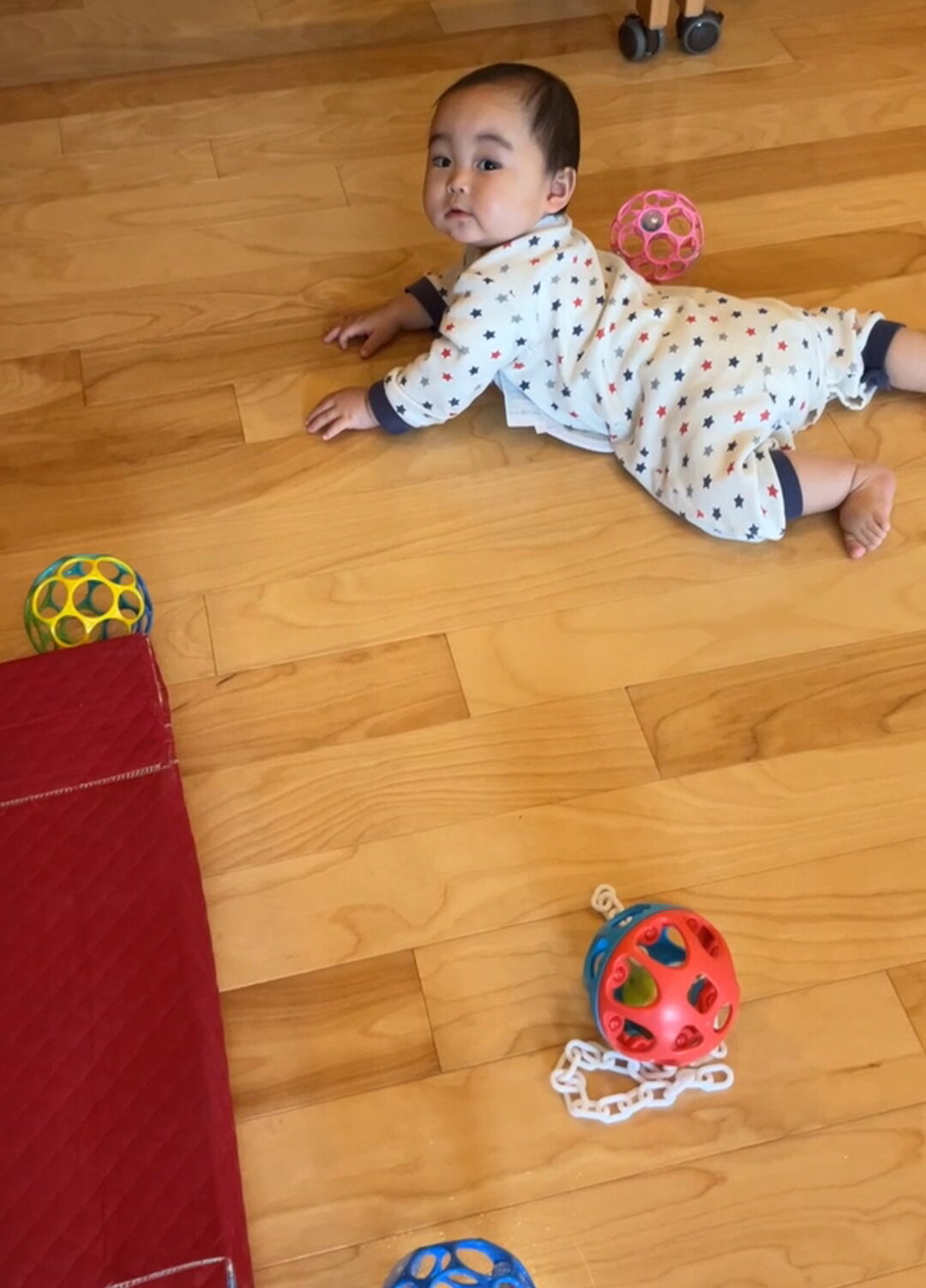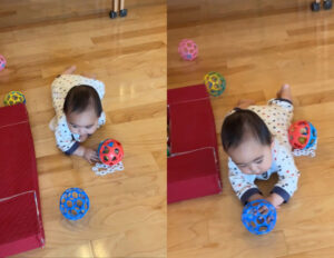 ずり這いでにじり寄ってはボールをゲ~ット \(^^)/