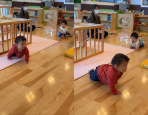 言葉をまだ持たないこの時期だからこそ、子どもたちはまなざしや表情、体の動きを通して、周囲の人やものと豊かにつながっています。