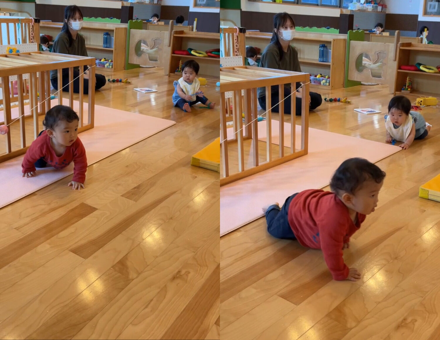 同じ空間の中で、同じような動きをしながら、自然と相手の存在を意識していく…その過程そのものが、対人関係の芽生えと言えるかも知れませんね。