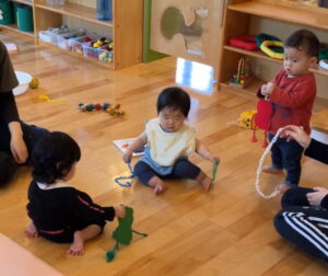遊びの中で出会う「もの」と「人」との関係の中で、興味はさらに広がり、安心感や喜びとともに心がゆっくりと育まれていくのではと思います。