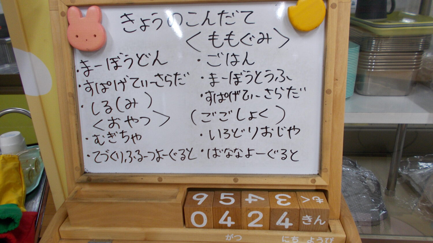 献立に変更があります。もも組の午後食がバナナヨーグルトに変わっています。