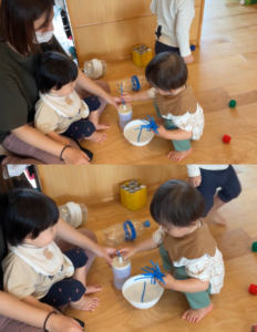 「物」を使った遊びでは、もっと難度が上がります。