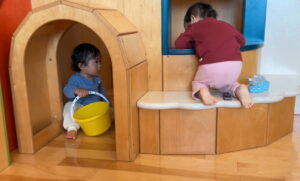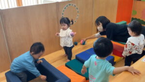 魅力的な室内の固定遊具を探検したりしながら、新しい環境を楽しんでいる様子が見られるようになりました。